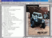 The program ARCTIC CAT ( PartSmart ) contains the catalogue of details and the service information for ATV, motor-cross-country vehicles and snowmobiles of this firm. The program Arctic Cat is delivered on one CD, established{installed} very simply, works with use of one CD, except for English language still more some languages. Has the convenient and simple interface, and also search under the name of a detail, number, models, search of applicability of a detail. Production presented to the program Arctic Cat - Water Craft, Snowmobile, ATV, Generators, Utility Vehicles The program Arctic Cat includes the catalogue of the additional equipment and accessories for ATV.