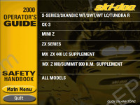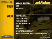 The program Bombardier Ski Doo 1999-2000 works from CD or is completely put on a hard disk under an environment Adobe Acrobat Inclided the full information on Bombardier Ski Doo 1999-2000 modelling year. The program Bombardier Ski Doo 1999-2000 is delivered on one CD, established{installed} very simply, except for English language still more some languages. Has the convenient and simple interface, and also search under the name of a detail, number, models, search of applicability of a detail. SHOP MANUAL PARTS CATALOG FLAT RATE TIME RACING HANDBOOK KITS OPERATOR'S GUIDE SPECIFICATION BOOKLET etc...
