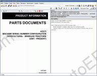 AGCO Parts Documents Catalogs Technical Publications AGCO TECHNICAL PUBLICATION CATALOG 79026334 AGCO BLOCK HEATERS-US & CAN MACHINE SERIAL NUMBER CONFIGURATION, AGRICULTURAL - WHEELED TRACTORS (2001 - PRESENT) MACHINE SERIAL NUMBER CONFIGURATION, HARVESTING - COMBINE HEADERS/ATTACHMENTS (2007 - PRESENT) MACHINE SERIAL NUMBER CONFIGURATION, HARVESTING - WINDROWERS AND ATTACHMENTS (2007 - PRESENT) MACHINE SERIAL NUMBER CONFIGURATION, HAY EQUIPMENT - HEADERS (2006 - PRESENT) MACHINE SERIAL NUMBER CONFIGURATION, HAY EQUIPMENT - BALERS AND ATTACHMENTS (2005 - PRESENT) MACHINE SERIAL NUMBER CONFIGURATION, HAY EQUIPMENT - MOWERS AND CONDITIONERS (2007 - PRESENT) AGCO QUICK REFERENCE AGCO SERVICE BULLETINS
