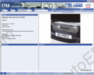 The electronic catalogue of spare parts Audi VW Skoda Seat ETKA 8 occupies one DVD, it is required to install for work completely on a hard disk. For installation it is required more than 1.9 Gb an empty seat. Catalogue Audi Vw Skoda Seat ETKA8 allows to enter VIN number of the car and carries out a filtration, thus connection to the Internet is required. The program on Vin deduces the full information on the car (an exact date of issue, type of the engine and a change speed gearbox, a complete set, color, è.ò.ä. In program Audi - Vw Skoda Seat ETKA 8 there is a function of search of application spare parts, it allows to search for application of a detail only on AUDI or only VW, or on all VAG at once, and also the information concerning to replacements and returnable parts, the information on "fractional" replacements. In program Audi Vw Etka there is a search on Vin, to the name of details, original number Vag and also search of applicability of details. In the program there is a catalogue of accessories about which allows not only to receive original catalogue numbers of accessories Audi VW for the further order, but also to look color photos accessories.